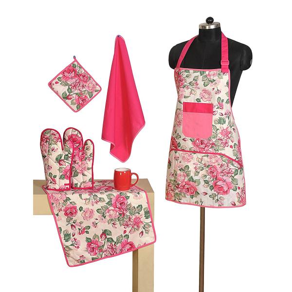 Cooking should be fun, not a chore! When you have the right kitchen accessories and a pretty apron to wear while you're prepping ingredients, baking and cooking, you can't help but enjoy cooking a little more. That's why every home chef deserves to be treated to the Handmade Patterned Cotton Chef's Apron Set, which provides eight coordinating kitchen accessories for an amazing low price.